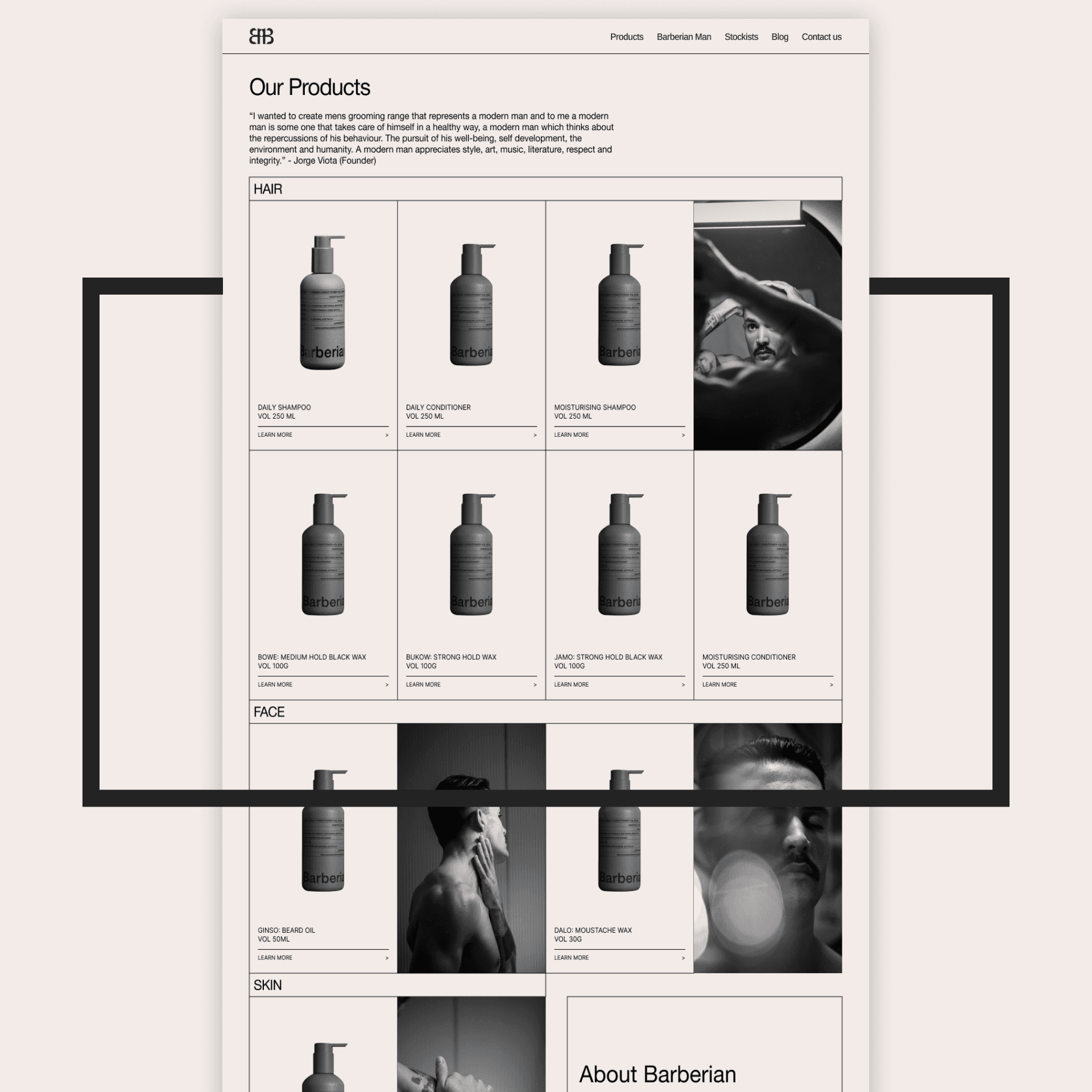 The Barberian website was designed as a central hub for the brand and its distributors, rather than a direct-to-consumer store. It showcases the full product range for wholesale and retail partners, while also giving existing distributors a place to access updated brand information and downloadable marketing assets.
