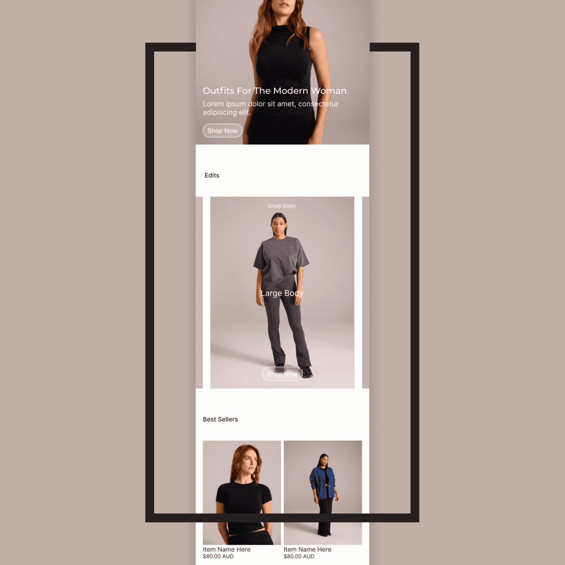 After a few meetings understanding the clients vision we finalised a primary and secondary logo and began working on a brand guideline document to ensure the branding remains consistent on all channels long after we part ways with the client. I then began work Creating designs for the website, specifically focusing on keeping the photography front and centre and allowing the aforementioned “wardrobe” checkout method.